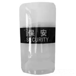 8.防爆盾牌。盾牌一般用于格擋行兇者的刀具、棍棒等兇器,是一種保安人員的防護器材,也可用盾牌進行戳擊行兇者。也有的盾牌具有電擊、強光、語言和聲音警示、催淚和染色等功能。